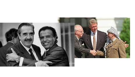 • El presidente, Carlos Menem, y el ex presidente, Raúl Alfonsín, firman el Pacto de Olivos, base de la reforma constitucional de 1994.